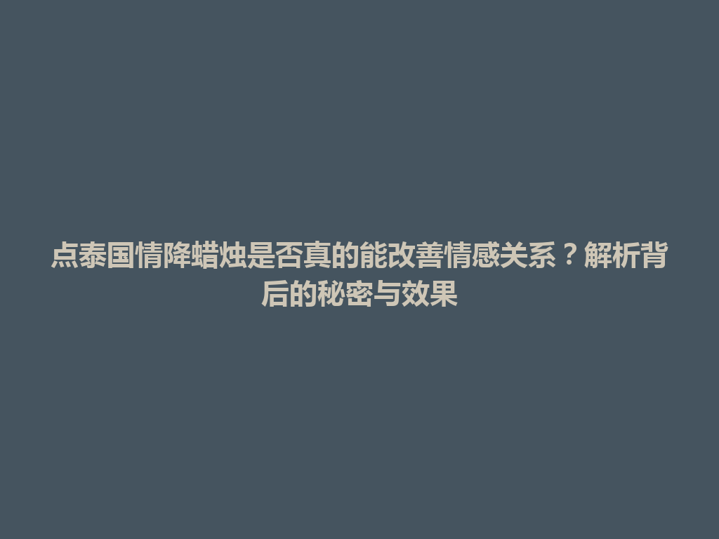 豆包网 情感资讯 洞口县点泰国情降蜡烛是否真的能改善情感关系?解析背后的秘密与效果